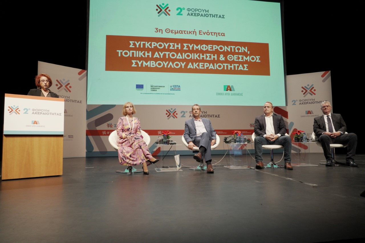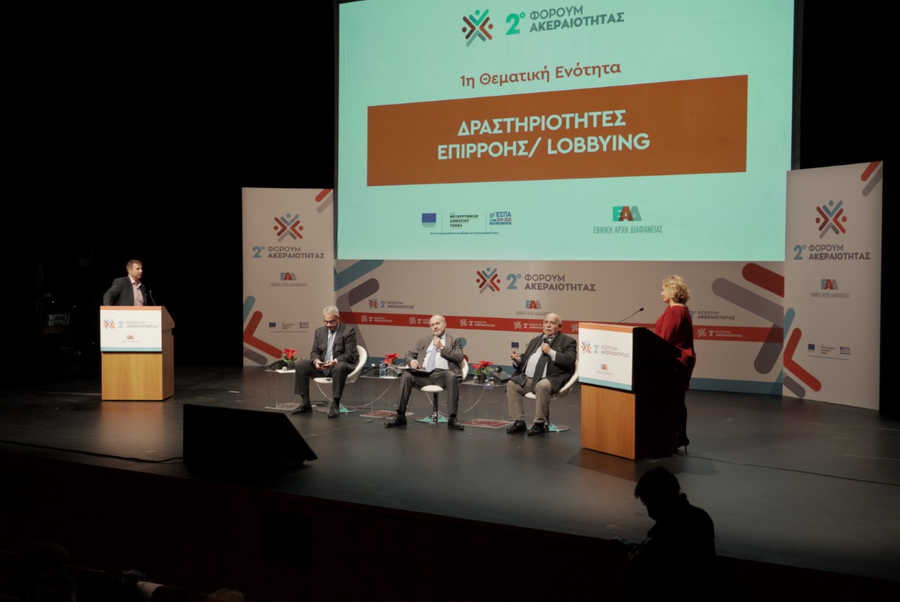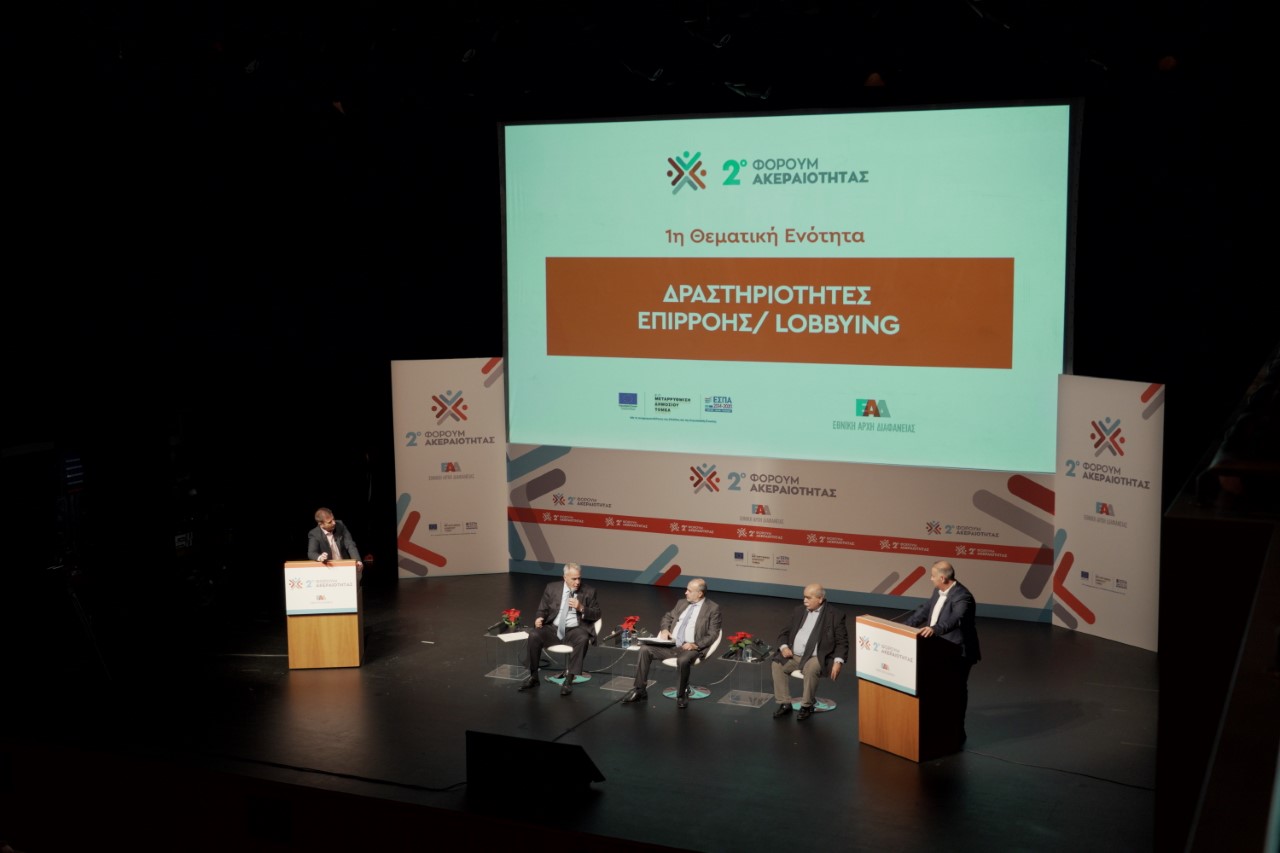 Με κεντρικό μήνυμα «Ακεραιότητα, Λογοδοσία και Διαφάνεια στα Ανώτερα Στελέχη της Κυβέρνησης και της Τοπικής Αυτοδιοίκησης», το 2ο Φόρουμ Ακεραιότητας έχει ως κεντρικό στόχο να καταστεί σημείο συνάντησης για τη διεξαγωγή ενός γόνιμου διαλόγου με όλους τους εμπλεκόμενους φορείς, εστιάζοντας σε ζητήματα που σχετίζονται με τη διαφάνεια και την δημόσια λογοδοσία, ως καθήκον και όχι ως επιλογή.